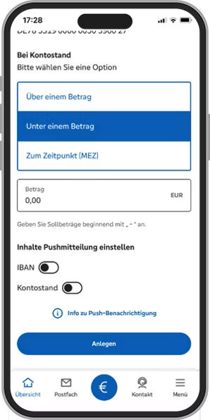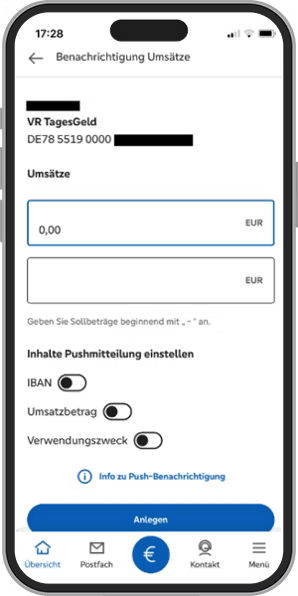 Mit der VR Banking App können Sie Push-Benachrichtigungen für Ihre girocard aktivieren – ganz einfach und individuell. So erhalten Sie direkt eine Nachricht auf Ihr Smartphone, wenn Ihre Karte für Zahlungen im Handel oder online eingesetzt wird. Auch Gutschriften werden angezeigt.